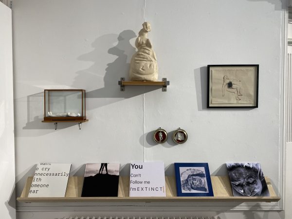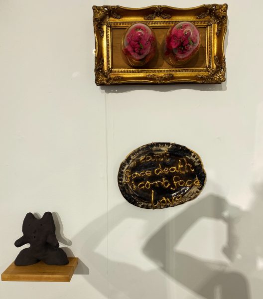 the exhibition at Oriel y bont gallery at South Wales University afforded the opportunity to present an installation of sculptures , textile work and paintings together with my Peisley Memoir albums.