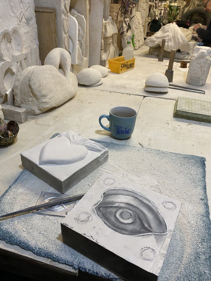Stone carving is the slower practise I employ and it runs on alongside everything else. It is arguably the most intentional as it’s the hardest ( literally) media to manipulate and re-work. I have found this to be very grounding for me. It accompanied me when other parts of me are giddy like a stoic friend.