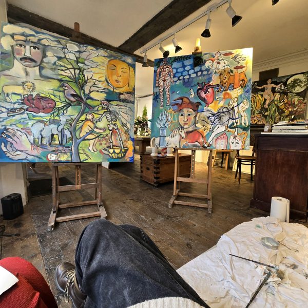 In January I booked a gallery in Faversham with the sole intention of having a good size space to work on several large canvas’ at once. It worked really well for me. I liked the engagement of passers by , it gave me the feeling of my process being accompanied.
